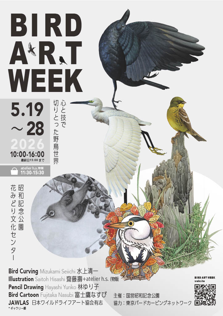 5月19日(火)から5月28日 (日)まで、昭和記念公園花みどり文化センターにて、野鳥アートイベント『BIRD ART WEEK』が開催されます。